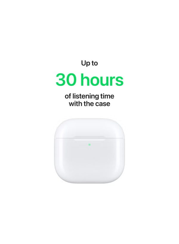AirPods 4 Wireless Earbuds, Bluetooth Headphones, Personalized Spatial Audio, Sweat and Water Resistant, USB-C Charging Case, H2 Chip, Up to 30 Hours of Battery Life, Effortless Setup For IPhone White