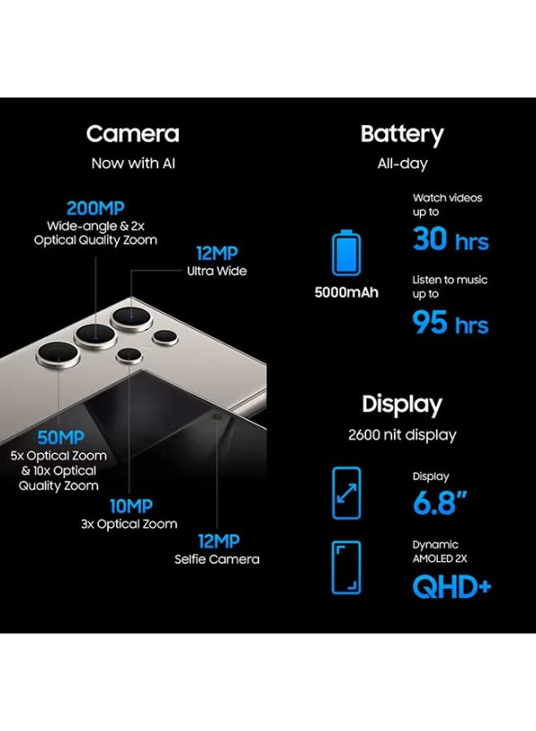 Samsung Galaxy S24 Ultra 5G – Titanium Black, 12GB RAM, 256GB Storage – Dual SIM, Ultra-Performance & Cutting-Edge Connectivity